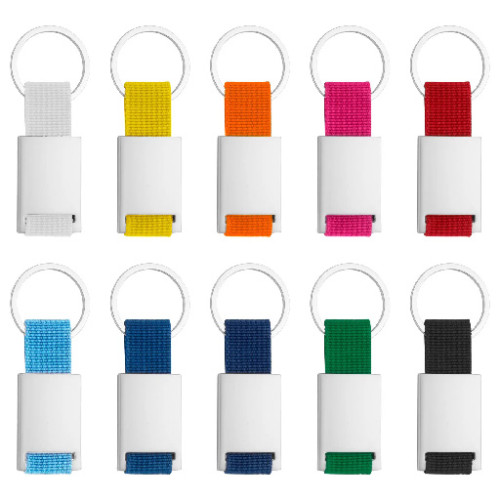 Elegantni privjesak za ključeve izrađen od metala i poliestera. Kombinira izdržljivost metala s fleksibilnošću poliestera, idealan za svakodnevnu upotrebu i brendiranje. Kompaktan dizajn omogućava praktično nošenje na ključevima ili torbi.